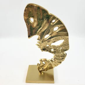 Design Único e Sofisticado: Escultura Folha com acabamento martelado que traz textura e brilho ao espaço. Material de Qualidade: Feita em alumínio, garantindo durabilidade e um visual impecável. Dimensões: Altura- 40cm / Largura - 22cm / Profundidade - 11cm / Peso - 925g