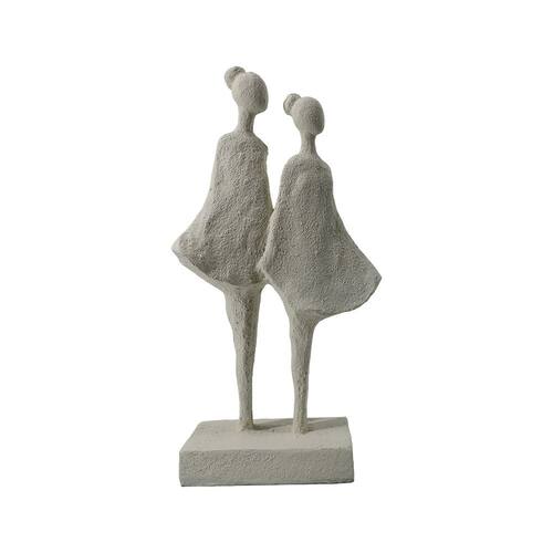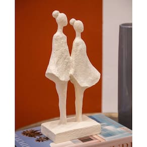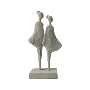 Escultura Decorativa Duas Meninas em Resina Branca