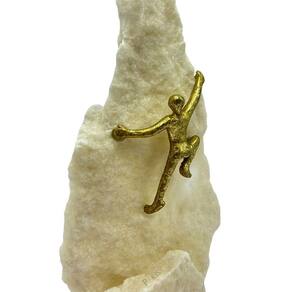 Escultura Decorativa Homem Escalando em Resina Dourada 38cm