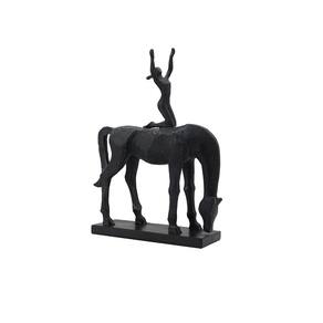 Escultura Decorativa Mulher no Cavalo em Resina Preta