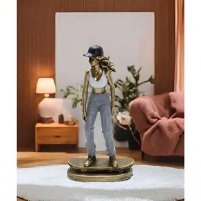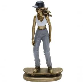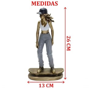 1 Estatueta Decorativa De Skatista Mulher Em Resina De 26cm;
