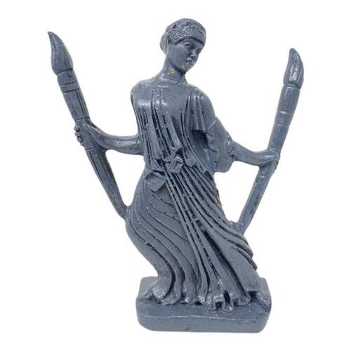 Escultura Deusa Hécate Wicca Duas Tochas Cinza 13cm Resina
