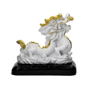 Escultura Dragão Chinês Proteção Branco Resina 7 cm