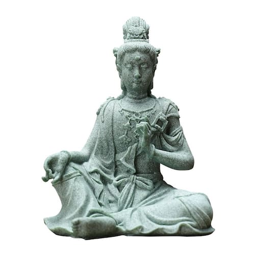 Material: arenito verde Tamanho: 8,2 x 7 x 10,2 cm Peso: 220 g Figura de Guanyin com expressão serena — Inspirada na estética tradicional chinesa, esta escultura captura a lua d'água Guanyin em uma pose calma e sentada, simbolizando compaixão e tranquilidade. Aparência de arenito verde texturizado — Feito de resina com acabamento em arenito verde natural, adicionando uma textura antiga e terrosa e um ambiente tranquilo à sua decoração. Decoração espiritual compacta — Medindo 8,2 x 7 x 10,2 cm, esta figura é ideal para pequenas áreas internas, como prateleiras, altares, mesas de chá, zonas de meditação ou aquários. Trabalho artístico altamente detalhado — Detalhes intrincados no manto e nos acessórios aumentam o valor artístico e cultural, tornando-a uma escultura de decoração de destaque. Material leve e durável — O material de resina garante qualidade duradoura com fácil portabilidade para colocação flexível em ambientes espirituais ou decorativos.