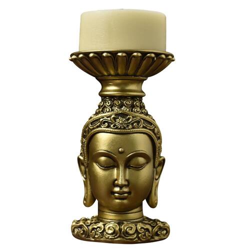 Material: Resina Tamanho: 8x8x14,5 cm Design elegante de cabeça de Buda — Esta escultura apresenta um rosto sereno de Buda com detalhes finamente esculpidos e uma plataforma de vela em forma de lótus para um ambiente espiritual tranquilo. Castiçal funcional — Projetado para guardar velas à luz de velas ou pilares, ele combina iconografia sagrada com decoração prática para rituais de meditação ou iluminação. Estilo antigo do sudeste asiático — Inspirada na estética tradicional do sudeste asiático, a peça é finalizada em um tom dourado envelhecido para uma aparência sagrada e envelhecida. Fabricação durável em resina — Feito de resina sólida, oferece estabilidade e textura detalhada, tornando-o adequado para colocação de longo prazo em altares ou consoles. Tamanho compacto e versátil — Medindo 14,5 x 8 x 8 cm, esse ornamento se encaixa perfeitamente em espaços pequenos, como templos domésticos, estantes de livros ou cantos zen.