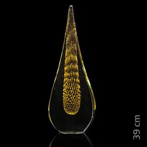 A Escultura Em Cristal Murano Da São Marcos é uma peça decorativa produzida 100% artesanalmente com a técnica secular e originária da Itália, a qual com muita maestria e criatividade são desenvolvidas e preservadas no brasil pela Cristais São Marcos desde 1962. A tradição do cristal murano e a inovação em detalhes, formas e cores, trazem requinte para a decoração. O colorido do murano em especial, torna-se um coringa na hora de decorar e produz um efeito muito bonito em locais com luz natural, não dependendo de nenhum outro elemento para se destacar. As peças em cristal murano, são atemporais, aposte nelas como a estrela da decoração ou ainda para harmonizar em combinações com diferentes artigos para compor um ambiente. Ficha Técnica Marca: São Marcos Modelo: Escultura Em Cristal Murano Com Ouro 24 K São Marcos Ref.: 8064CT Material: Cristal Murano Cor: Com Ouro 24 K Medidas A x C x L : 7 x 14 x 39 cm Peso: 3,14Kg Conteúdo Da Embalagem: 01 Escultura Em Cristal Murano Com Ouro 24 K São Marcos Junto com as peças em murano, leve ainda um pouco de história. Uma dica é misturar diferentes muranos e criar sua coleção de arte particular. O cristal murano, tornou-se objeto de desejo por suas características únicas. Sendo assim, com todas essas particularidades, ele é uma ótima escolha para decorar, colecionar e ainda presentear com classe e sofisticação. IMPORTANTE: Produto produzido de forma artesanal, são admitidas nas características finais do processo de produção desse produto pequenas variações de peso, formato, cor e ainda o aparecimento de minúsculas bolhas de ar, típicas do cristal murano. Ean: 7894728703304