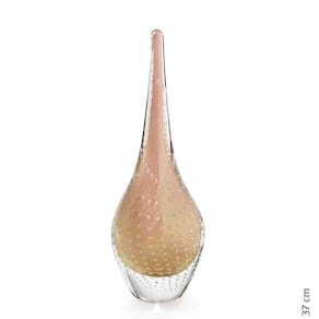 A Escultura Em Cristal Murano Da São Marcos é uma peça decorativa produzida 100% artesanalmente com a técnica secular e originária da Itália, a qual com muita maestria e criatividade são desenvolvidas e preservadas no brasil pela Cristais São Marcos desde 1962. A tradição do cristal murano e a inovação em detalhes, formas e cores, trazem requinte para a decoração. O colorido do murano em especial, torna-se um coringa na hora de decorar e produz um efeito muito bonito em locais com luz natural, não dependendo de nenhum outro elemento para se destacar. As peças em cristal murano, são atemporais, aposte nelas como a estrela da decoração ou ainda para harmonizar em combinações com diferentes artigos para compor um ambiente. Ficha Técnica Marca: São Marcos Modelo: Escultura Em Cristal Murano Rosa Com Ouro 24 K São Marcos Ref.: 8116 RO Material: Cristal Murano Cor: Rosa Com Ouro 24 K Medidas A x C x L : 37 x 12,5 x 12 cm Peso: 3.216g Conteúdo Da Embalagem: 01 Escultura Em Cristal Murano Rosa Com Ouro 24 K - São Marcos Junto com as peças em murano, leve ainda um pouco de história. Uma dica é misturar diferentes muranos e criar sua coleção de arte particular. O cristal murano, tornou-se objeto de desejo por suas características únicas. Sendo assim, com todas essas particularidades, ele é uma ótima escolha para decorar, colecionar e ainda presentear com classe e sofisticação. IMPORTANTE: Produto produzido de forma artesanal, são admitidas nas características finais do processo de produção desse produto pequenas variações de peso, formato, cor e ainda o aparecimento de minúsculas bolhas de ar, típicas do cristal murano. Ean: 7894728710395