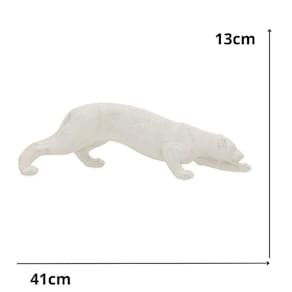 Escultura Em Poliresina Pantera 13x41x7,5cm 19408 Mart ATENÇÃO: As cores dos produtos podem sofrer variações em função das características do monitor e do ambiente durante sua visualização. As esculturas possuem um design único que oferecem um equilíbrio na decoração do seu lar, um produto exclusivo que resulta em uma decoração ousada e moderna, ao mesmo tempo que traze praticidade e sofisticação ao ambiente. Temática: Uma escultura de pantera geralmente simboliza força, agilidade, mistério e proteção. A pantera é um animal poderoso e elegante, frequentemente associado a coragem e destreza. No contexto decorativo, uma escultura de pantera pode ser Utilizado para transmitir uma aura de poder silencioso e sofisticação, além de refletir uma conexão com a natureza selvagem e o instinto de proteção. Dependendo do design da escultura se é realista, estilizada ou abstrata , ela pode ter uma interpretação mais direta ou artística, mas no geral, a pantera é uma figura ligada ao mistério e à independência. DIMENSÕES: Altura: 13cm Largura: 41cm Profundidade:7,5cm Peso:0,13kg Cor: Bege Marca: Mart Material: Poliresina Contém: 1 Unidade Na Embalagem DICAS DE CONSERVAÇÃO: Limpar com pano seco sem produtos químicos. OBSERVAÇÕES: Os objetos que ambientam as imagens não acompanham o produto. Produtos e cores podem variar daqueles representados na embalagem. Marca: Não Informado