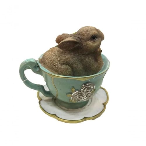 Escultura Em Resina Coelho Cooper Na Xicara ira dar um toque especial de sofisticação em sua decoração ou até mesmo em sua mesa posta, com detalhes singulares e sutis, espalhando charme e delicadeza por seu lar.