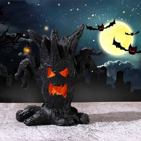 Material: Resina Tamanho: 5 cm × 4,6 cm Peso: 17,8 g ['Creepy Tree Monster Design — Esta escultura assustadora de árvore negra com olhos e boca alaranjados brilhantes traz uma atmosfera emocionante de Halloween à decoração do seu jardim ou casa. ', 'Construção durável em resina — Feito de material de resina de alta qualidade, este enfeite de Halloween é à prova d'água, resistente ao desbotamento e adequado para uso interno e externo. ', 'Compacto, mas atraente — Medindo aproximadamente 5 × 4,6 cm e pesando 17,8 g, a figura pequena adiciona um grande impacto visual a mesas, caminhos ou paisagens em miniatura. ', 'Decoração de jardim perfeita — Ideal para pátios, gramados, jardins de fadas ou cenas de casas mal-assombradas, aprimorando as exibições sazonais com um charme sombrio e misterioso. ', 'Acabamento artesanal detalhado — apresenta entalhes finos e pintura vibrante para uma textura realista, tornando-a uma estátua de Halloween exclusiva para arranjos artísticos.']
