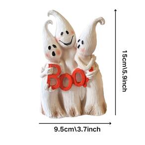 Material: Resina Tamanho: 9,5 cm × 15 cm Peso: 210 g [Design adorável do Ghost Trio — Apresenta três fantasmas sorridentes segurando uma placa vermelha brilhante de “BOO”, criando uma atmosfera amigável e festiva de Halloween em qualquer ambiente. ', 'Artesanato em resina de alta qualidade — Feita de resina premium com texturas pintadas à mão, esta escultura é à prova d'água, durável e resistente ao desbotamento para exibição interna e externa. ', 'Decoração de jardim versátil — perfeita para pátios, gramados, prateleiras ou mesas, trazendo o espírito alegre de Halloween para a decoração de sua casa ou jardim. ', 'Detalhes vívidos e divertidos — Cada fantasma tem expressões encantadoras e acabamentos suaves, dando à estátua uma aparência animada que complementa as exibições sazonais ou diárias. ', 'Tamanho compacto e robusto — mede cerca de 9,5 × 15 cm e pesa aproximadamente 210 g, é fácil de colocar em qualquer lugar, mantendo um forte impacto visual.']
