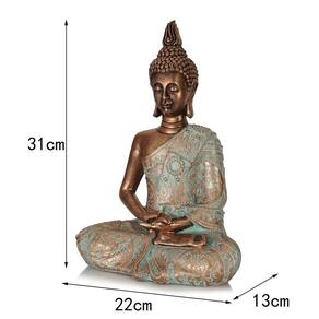 Material: Resina Tamanho: 22x13x31 cm Peso: 950 g Elegância do Sudeste Asiático — Esta figura de Buda exibe uma túnica azul e bronze deslumbrante com padrões intrincados em relevo, capturando a essência da arte espiritual tradicional tailandesa. Pose de meditação pacífica — Projetada em uma postura serena sentada, a escultura reflete atenção plena e tranquilidade, ideal para um ambiente espiritual em vários ambientes decorativos. Artesanato em resina premium — Feita de resina de alta qualidade com revestimento metálico, a estátua oferece durabilidade, textura fina e rico contraste de cores para uso duradouro na decoração. Tamanho de tela generoso — Medindo 22x13x31 cm e pesando 950g, esta escultura de médio a grande porte é ideal como ornamento focal em salas de estar, entradas ou restaurantes. Decoração artística versátil — aprimora qualquer interior com charme zen e profundidade cultural, perfeita para decoração doméstica e comercial do sudeste asiático, boêmia ou com tema espiritual.