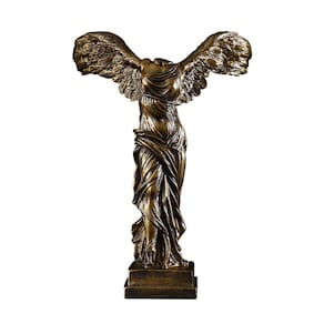 Material: Resina Tamanho do produto: Altura: 14 cm, largura: 10 cm, comprimento inferior: 4,5 cm, largura inferior: 4,5 cm Peso do produto: 300 g Design da vitória alada: inspirada na arte grega antiga, esta estátua de resina captura a essência da deusa da vitória, um símbolo de triunfo e força divina. Acabamento semelhante ao bronze: feita com uma aparência de bronze vintage, a escultura enfatiza dobras graciosas e asas detalhadas, adicionando elegância a qualquer espaço. Tamanho decorativo compacto: medindo 14 cm de altura e 10 cm de largura, esta estatueta é perfeita para mesas, prateleiras, armários de vinho ou expositores de mesa. Ornamento da mitologia clássica: uma peça significativa de decoração artística que incorpora vitória, resiliência e poder, adequada para interiores tradicionais e modernos. Material de resina durável: feita de resina de alta qualidade, esta escultura é leve e resistente, garantindo beleza duradoura e charme artístico.