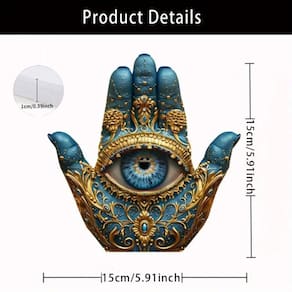 Material: PVC Tamanho: 15x15cm Peso: 48g Design simbólico exclusivo — Esta escultura apresenta um design artístico à mão com um olho central, inspirado em símbolos místicos e espirituais como a “Mão da Proteção” ou o “Terceiro Olho”, ideal para espaços de meditação. Decoração artística de mesa — Com seus intrincados detalhes dourados e detalhes em azul vibrante, esse ornamento abstrato traz uma presença visual marcante a qualquer mesa, prateleira ou altar. Compacta e leve — Medindo 15x15cm e pesando apenas 48g, esta escultura é fácil de colocar em mesas, cornijas ou estantes de livros sem ocupar muito espaço. Construção durável em PVC — Feita de material de PVC de alta qualidade, esta estátua é leve e durável, garantindo uma decoração duradoura para ambientes domésticos ou de escritório. Peça de decoração versátil — perfeita para uso em salas de estar, quartos, escritórios ou estúdios de ioga, esse ornamento aprimora qualquer estilo de decoração com um toque de mistério e talento artístico.