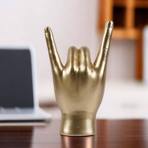 Material: resina Tamanho: 12x8,5x19,5 cm Peso: 450 GB Design inspirado na rocha dourada — Esta escultura captura o icônico gesto de metal com a mão, simbolizando paixão, atitude e energia, tornando-a uma peça ideal para entusiastas da música e amantes da decoração moderna. Acabamento dourado atraente — A estátua apresenta uma superfície dourada metálica que aumenta seu impacto visual, adicionando um toque moderno e elegante a qualquer mesa ou prateleira. Construção durável em resina — Feito de resina de alta qualidade, este ornamento é robusto e resistente ao desgaste, oferecendo uso duradouro em ambientes casuais e profissionais. Tamanho compacto e impressionante — Com dimensões de 12x8,5x19,5 cm e peso de 450 g, é perfeito para desktops, balcões de bar ou estantes de escritório sem ocupar espaço excessivo. Declaração de decoração versátil — Seja para um bar, estúdio de música ou sala de estar, esta escultura serve como uma decoração artística única, expressando individualidade e caráter artístico.