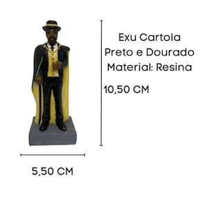Escultura Exú Cartola 10,5cm em Resina Umbanda Candomblé Cor: Capa Preta Dourado Escultura Exú Cartola 10,5cm em Resina Umbanda Candomblé