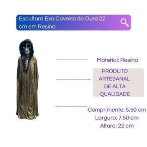 Escultura Exú Caveira em Pé com Manto 22 cm em Resina- Cor Cor: Ouro Escultura Exú Caveira em Pé com Manto 22 cm em Resina- Corx000D x000d A Escultura Exu Caveira em Pé da Bialluz é uma estatueta repleta de detalhes bem feitos e um ótimo item decorativo. Confeccionado em resina garante alta resistência e durabilidade. Possui uma pintura realizada artesanalmente com um brilho incomparável e cores vibrantes.x000d x000d Escolha uma das cores disponíveis na opção COR do próprio anúncio.x000d x000d Enviamos a sua escultura em até 24 horas após a confirmação de pagamentox000D x000d Dimensões aproximadas:x000D Altura: 22 cmx000D Largura: 7,5 cmx000D Comprimento: 5,5 cmx000D Peso: 638 gramasx000D x000d Material: Resinax000D x000d Por ser uma peça feita artesanalmente e pintada à mão podem ocorrer pequenas variações nas cores ou tamanhos.x000d x000d Caso tenha alguma dúvida nos mande mensagem que respondemos rapidinho para te ajudar da melhor forma possívelx000D Marca: Bialluz Marca: Bialluz