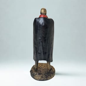 Escultura de Exu Marabô em resina, 10 cm. Representado em pé com os braços cruzados, transmite imponência e força. Detalhes cuidadosamente trabalhados que destacam a expressão firme e a presença marcante deste orixá, ideal para quem valoriza a espiritualidade e a tradição nas suas peças de decoração ou culto.