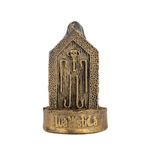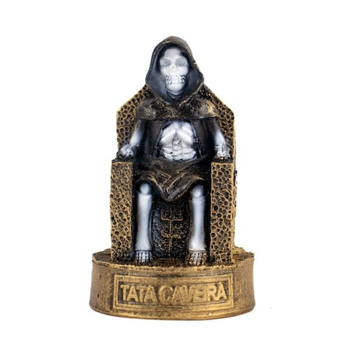 Leve a força e proteção de Exu Tata Caveira para seu altar ou espaço espiritual com esta escultura compacta de 8 cm, rica em detalhes e pintura vintage. Representando o guardião dos caminhos, da justiça e das almas, Tata Caveira atua com seriedade e firmeza nas demandas espirituais.