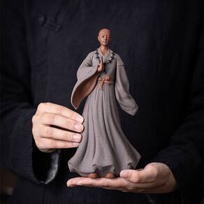 Material: Cerâmica Tamanho: 11,5 x 11,5 x 22,3 cm Design elegante de monge zen — Apresentando um monge em pé em vestes esvoaçantes com uma expressão facial composta e contas de oração detalhadas, esta figura transmite tranquilidade e profundidade espiritual. Artesanato em cerâmica fina — Feita de cerâmica roxa no estilo argila, a estátua oferece uma textura fosca e detalhes refinados, perfeitos para os amantes da arte tradicional chinesa. Tamanho marcante para exibição — Com 22,3 cm de altura, essa figura é uma peça central atraente em mesas de chá, altares, estantes de livros ou interiores com temas culturais. Símbolo de serenidade e cultura — Com sua postura solene e estilo minimalista, serve como uma representação simbólica da atenção plena, meditação e filosofia tradicional do chá. Perfeito para salões de chá e cenas de decoração — Projetado como complemento da cerimônia do chá ou enfeite de prateleira, ele adiciona sofisticação e beleza espiritual a interiores de estilo asiático ou ambientes zen.