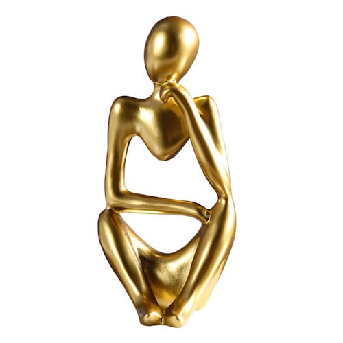 Material: Resina Tamanho: 6x5,2x12,5 cm Peso: 110 g Design abstrato moderno — Com uma figura pensadora sem rosto em uma pose estilizada, esta escultura captura elegância minimalista e expressão artística perfeita para interiores contemporâneos. Construção em resina de alta qualidade — Feita de resina premium com acabamento liso em ouro metálico, a estátua é leve e durável para uso decorativo de longa duração. Compacto e versátil — Medindo apenas 12,5 cm de altura, é o tamanho ideal para mesas de escritório, estantes de livros ou pequenas mesas laterais, adicionando um toque refinado sem ocupar espaço. Símbolo de reflexão e criatividade — A pose sentada com a mão no queixo representa pensamento e imaginação profundos, tornando-a um acento significativo para salas de estudo ou espaços de trabalho criativos. Sofisticado Home Accent — Uma peça perfeita para apartamentos modernos, casas modelo ou espaços de estar minimalistas, aprimorando o tema geral da decoração artística com um tom dourado ousado.