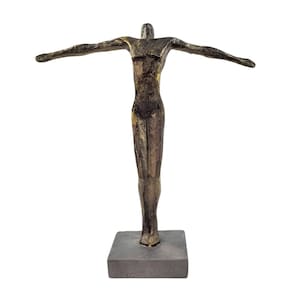 Escultura em resina bronze Figura humana de braços abertos Arte e decoração sofisticada Elemento decorativo expressivo
