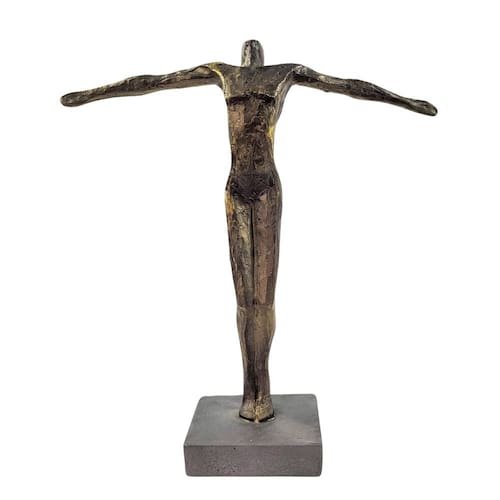 Arte e Emoção: Acrescente um elemento decorativo que simboliza liberdade e acolhimento, tornando seu espaço mais acolhedor e inspirador. Peça Versátil: Ideal para diversos ambientes, seja em casa ou no escritório, destacando-se como um símbolo de arte e sofisticação. Detalhes que Encantam: O acabamento em bronze e a pose expressiva fazem desta escultura um verdadeiro destaque na decoração.
