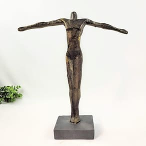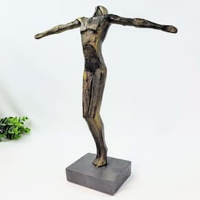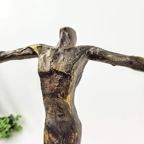 Design Expressivo e Sofisticado: Escultura de figura humana com braços abertos, trazendo um toque de arte e emoção ao seu espaço Material de Alta Qualidade: Feita em resina na cor bronze, garantindo durabilidade e um acabamento impecável Dimensões Elegantes: Ideal para ser o destaque em mesas, aparadores ou estantes, complementando sua decoração com estilo