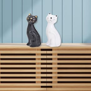Descrição: O Gatinho Decoração Hale DEE02011 é uma encantadora peça de cerâmica disponível nas cores preto e branco. Este adorável item de decoração adicionará charme ao seu espaço. Leve, com apenas 269g, é uma escolha elegante para dar um toque especial à sua decoração.