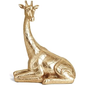 Escultura Girafa Sentada em Poliresina Dourada - Mart