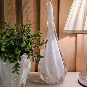 Escultura Gota De Murano Branco Leitoso 29cm Decoração Escultura Gota de Murano Decorativa Branco Leitoso