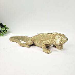 Não perca a oportunidade de adicionar uma peça decorativa exótica e sofisticada ao seu ambiente. Adquira sua escultura de iguana dourada hoje mesmo
