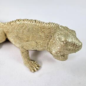 Não perca a oportunidade de adicionar uma peça decorativa exótica e sofisticada ao seu ambiente. Adquira sua escultura de iguana dourada hoje mesmo