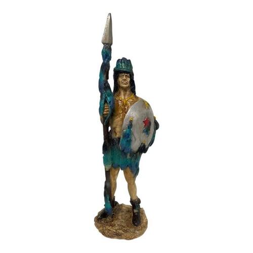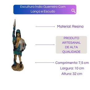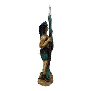 Escultura Índio Guerreiro Com Lança e Escudo 32 cm em Resina Escultura Índio Guerreiro Com Lança e Escudo 32 cm em Resina