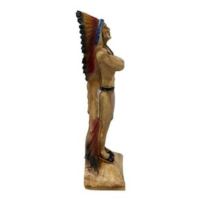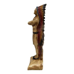 Escultura Índio Xamã Guardião Com Cocar 24 cm em Resina