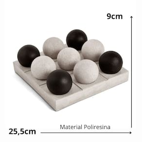 Uma versão minimalista e estilizada do tradicional Jogo da Velha (Tic-Tac-Toe) ou algum tipo de jogo de estratégia baseado em posicionamento de peças. Os botões arredondados sugerem que as peças podem ser movidas ou removidas, o que poderia indicar um jogo de lógica, talvez semelhante ao jogo de Solitário Peg, onde você pula peças para removê-las até sobrar apenas uma. DIMENSÕES: Altura: 9cm Comprimento:25,5cm Material: PoliresinaCONTEÚDO NA EMBALAGEM:1 Unidade