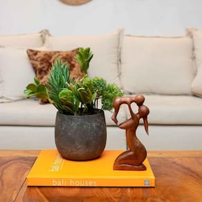 Escultura Mãe e Filho de Madeira Suar Importada de Bali Escultura Mãe e Filho de Madeira Suar Importada de Bali A nossa escultura Mãe e Filho é perfeita para para complementar a decoração de qualquer ambiente, seja na sua casa ou escritório. Representa o amor maternal. É feita em madeira suar e é super delicada. Possui acabamento rústico. Material: madeira Suar Cor: Natural o tom de madeira pode variar entre claro e escuro Peso: aproximadamente 135g Largura: 9,5cm Altura: 19cm Profundidade: 3cm Origem: bali O produto é artesanal, fabricado e de Bali e por isso pode apresentar pequenas variações de cor, tonalidade, brilho, peso e tamanho. Não deixe a sua peça em contato prolongado com a água, a não ser que seja peça que possa ser exposta ao sol e chuva. As fotos são ilustrativas. Qualquer produto adicional utilizado na composição das fotos deve ser comprado separadamente. Marca: Não Informado