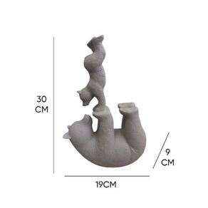 Escultura Mãe Urso E Seu Filhote Estatueta Decorativa Cinza Escultura Mãe Urso E Seu Filhote