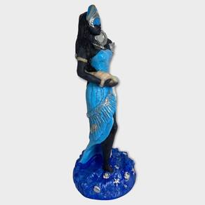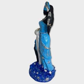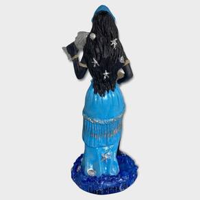 Escultura orixá Iemanjá africana 23 cm roupa azul claro em resina
