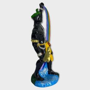 O Orixá Oxumaré também conhecido como Oxumarê representa a cobra arco-íris, que traz as características do animal como a mobilidade, agilidade e destreza. Ele mora no céu e viaja através do arco-íris para a Terra. Além disso, ele representa a fortuna, abundância, prosperidade e riqueza que são realizações importantes para o seu povo. Além de servir como decoração, essa linda escultura em resina de alta qualidade, pintura artesanal e acabamento rico em detalhes pode ser um ótimo presente para homenagear pessoas especiais.