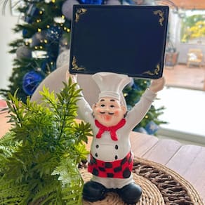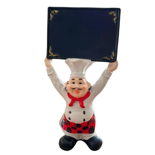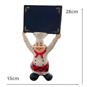 Adicione charme e funcionalidade ao seu espaço com esta encantadora escultura de padeiro! Perfeita para padarias, cozinhas, restaurantes ou até mesmo como item decorativo em casa, esta peça possui um design alegre e acolhedor. Dimensões: 28cm de altura x 15cm de largura x 7cm de profundidade Material: Resina de alta qualidade, com detalhes pintados à mão Funcionalidade: Placa preta com cantos decorados, ideal para escrever mensagens, cardápios ou recados usando giz Estilo: Design clássico de padeiro, com roupa tradicional, avental quadriculado e toque artesanal Crie um ambiente único e aconchegante com esta escultura que une decoração e praticidade!