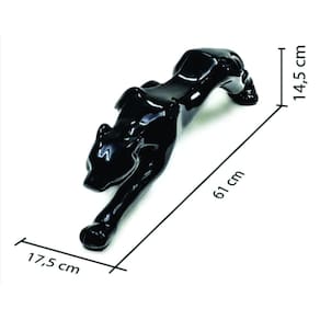 A escultura Pantera Negra em Cerâmica é uma peça impressionante que traz sofisticação e estilo para qualquer ambiente. Com dimensões de 61 cm de comprimento, 17,5 cm de largura e 14,5 cm de altura, esta obra se destaca por seu design elegante e imponente. Fabricada pela renomada MENDES & ROCHA Cerâmica, cada detalhe foi cuidadosamente elaborado para capturar a essência majestosa da pantera.