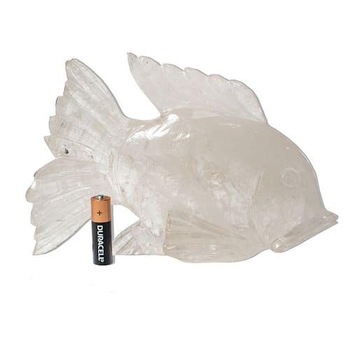 Peixe em Quartzo Cristal – Clareza, Purificação e Conexão Espiritual na Sua Decoração O peixe, símbolo de fluidez, renovação e sabedoria intuitiva, representa a capacidade de atravessar as águas da vida com leveza e consciência. Esculpido artesanalmente em Quartzo Cristal natural, esta escultura combina pureza visual e profundidade simbólica, sendo perfeita para ambientes que buscam luz, harmonia e elevação energética. Benefícios do Quartzo Cristal: Considerado o “regeneradr universal”, o Quartzo Cristal é uma das pedras mais valorizadas na litoterapia por sua versatilidade e poder amplificador. Ele favorece:\nClareza mental e foco\nPurificação energética de pessoas e ambientes\nAmplificação de intenções e vibrações espirituais\nAlinhamento dos chakras e expansão da consciência\nA escultura de peixe em Quartzo Cristal é ideal para espaços de meditação, práticas espirituais, ambientes terapêuticos ou qualquer local onde se deseje promover paz, luz e equilíbrio energético. Também é uma peça especial para presentear com intenções de regeneração e elevação espiritual. Detalhes da Escultura: Pedra: Quartzo Cristal NaturalFormato: Peixe (artesanato manual)Acabamento: Polido com brilho suave e textura translúcidaCor: Transparente com possíveis inclusões naturais, veios ou nuvens internasTamanho Aproximado: 26 x 14cm (podendo variar)Peso Médio: 1,6kgOrigem: Cristais de Curvelo – MG, Brasil Cuidados: Limpar com pano seco ou levemente umedecido. Pode-se aplicar óleo mineral com moderação para realçar o brilho natural da pedra. Observação Importante: Cada escultura é única, feita com pedra natural. Variações de transparência, inclusões internas e pequenos veios fazem parte da autenticidade e beleza do Quartzo Cristal. As imagens são ilustrativas e representam o padrão de qualidade do produto. Marca: Não Informado