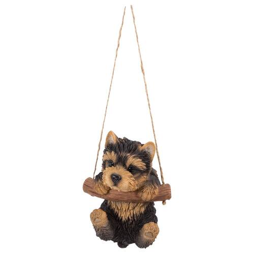 Filhote de cachorro Yorkshire Terrier pendurado, preto
