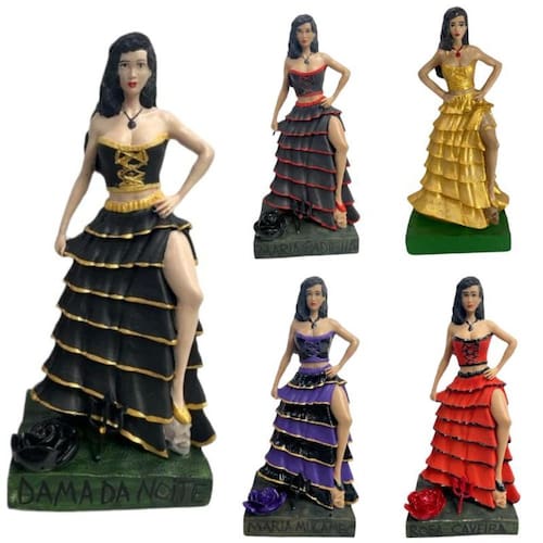 A Escultura Pomba Gira com Crânio no Pé 7 Saias da Bialluz é uma estatueta repleta de detalhes bem feitos e um ótimo item decorativo. Confeccionado em resina garante alta resistência e durabilidade. Possui uma pintura realizada artesanalmente com um brilho incomparável e cores vibrantes.