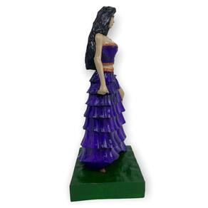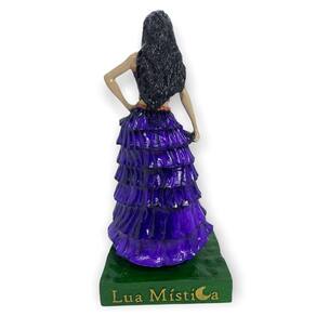 Escultura Pomba gira Roxa 24 cm com crânio no pé 7 saias em resina