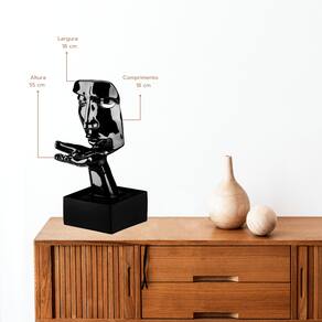 Escultura Rosto Humano: Arte Moderna que Expressa o Beijo Luxuoso e a Face da ElegânciaAdicione um toque de sofisticação e emoção à sua decoração com a Escultura Rosto Humano. Com um design moderno que captura a beleza do beijo e a expressão da face, esta escultura é mais do que uma peça decorativa; é uma obra de arte que transcende o ordinário, proporcionando um toque luxuoso ao seu espaço.Características MarcantesExpressão do Beijo: A Escultura Rosto Humano é uma representação emocional do momento do beijo, capturando a intensidade e a beleza desse gesto romântico.Altura Imponente: Com 55 cm de altura, esta escultura se destaca como uma peça central, conferindo presença e elegância ao ambiente em que é exibida.Detalhes Finamente Trabalhados: Cada detalhe do rosto é esculpido com precisão, transmitindo uma autenticidade que ressalta a qualidade artística da peça.Por que escolher a Escultura Rosto Humano?Beleza Romântica: A representação do beijo cria uma atmosfera romântica e emocional, tornando esta escultura um ponto focal encantador em qualquer ambiente.Luxo na Decoração: Seja na sala de estar, quarto ou hall de entrada, a Escultura Rosto Humano adiciona um toque de luxo e elegância à sua decoração.Presente Exclusivo: Surpreenda alguém especial com um presente que expressa sentimentos e a estética refinada da arte moderna.Características- Material: Fibra de Vidro e Resina Poliéster- Pintura: Automotiva UV- Medidas (AxLxP): 55 x 18 x 18 cm- Peso: 3 kg- Montagem: O produto é enviado montado- Como receberei esse produto: 1 volumePerguntas Frequentes1. Qual é o material da Escultura Rosto Humano?A escultura é habilmente esculpida em fibra de vidro e resina, garantindo durabilidade e uma estética luxuosa.2. Qual é o tamanho da escultura?Com 55 cm de altura, a Rosto Humano é uma peça imponente que se destaca em diferentes espaços.3. Como é feita a embalagem para envio?Utilizamos embalagens seguras e resistentes para garantir que a escultura chegue impecável até você.4. Como realizar a limpeza da mesa?Basta usar um pano macio e levemente úmido para manter a beleza da máscara ao longo do tempo.Deixe que a beleza e a expressividade da Escultura Rosto Humano transformem seu ambiente em uma galeria de arte pessoal. Adquira agora e adicione uma peça luxuosa e emocional à sua decoração.Avisos e Observações- Todos os produtos vão embalados com total segurança- As cores dos produtos podem sofrer alterações dependendo do seu monitor- As imagens são meramente ilustrativas, não acompanham objetos de decoração móveis e/ou eletros.- Confira as dimensões do produto no momento da compra Marca: Bomarzo Design