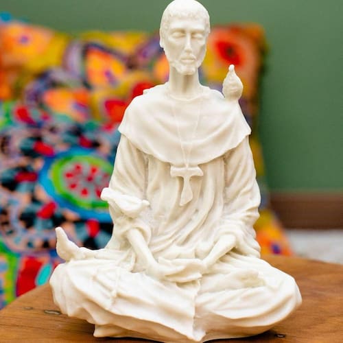 São Francisco de Assis foi um frade católico nascido na atual Itália. Depois de uma juventude irriquieta e mundana, voltou-se para uma vida religiosa de completa pobreza, fundando a ordem mendicante dos frades menores, mais conhecidos como franciscanos, que renovaram o catolicismo do seu tempo. Que tal ter uma escultura de São Francisco na sua casa ou escritório Nossa escultura é feita de pó de mármore e é peça perfeita para devotos e pessoas religiosas.