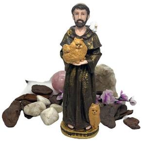 Escultura São Francisco Padroeiro dos Animais 30 cm Resina