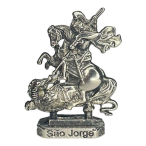 Escultura São Jorge 5,5 cm Niquelado em Metal Proteção